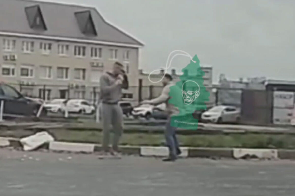 Видеорегистратор автомобиля, водитель которого стал очевидцем произошедшего, запечатлел инцидент. На кадрах видно, как двое мужчин выходят на проезжую часть и начинают драку, в процессе конфликта водители наносят друг другу удары, стоя на дороге. По информации канала, завершить драку помогли очевидцы.