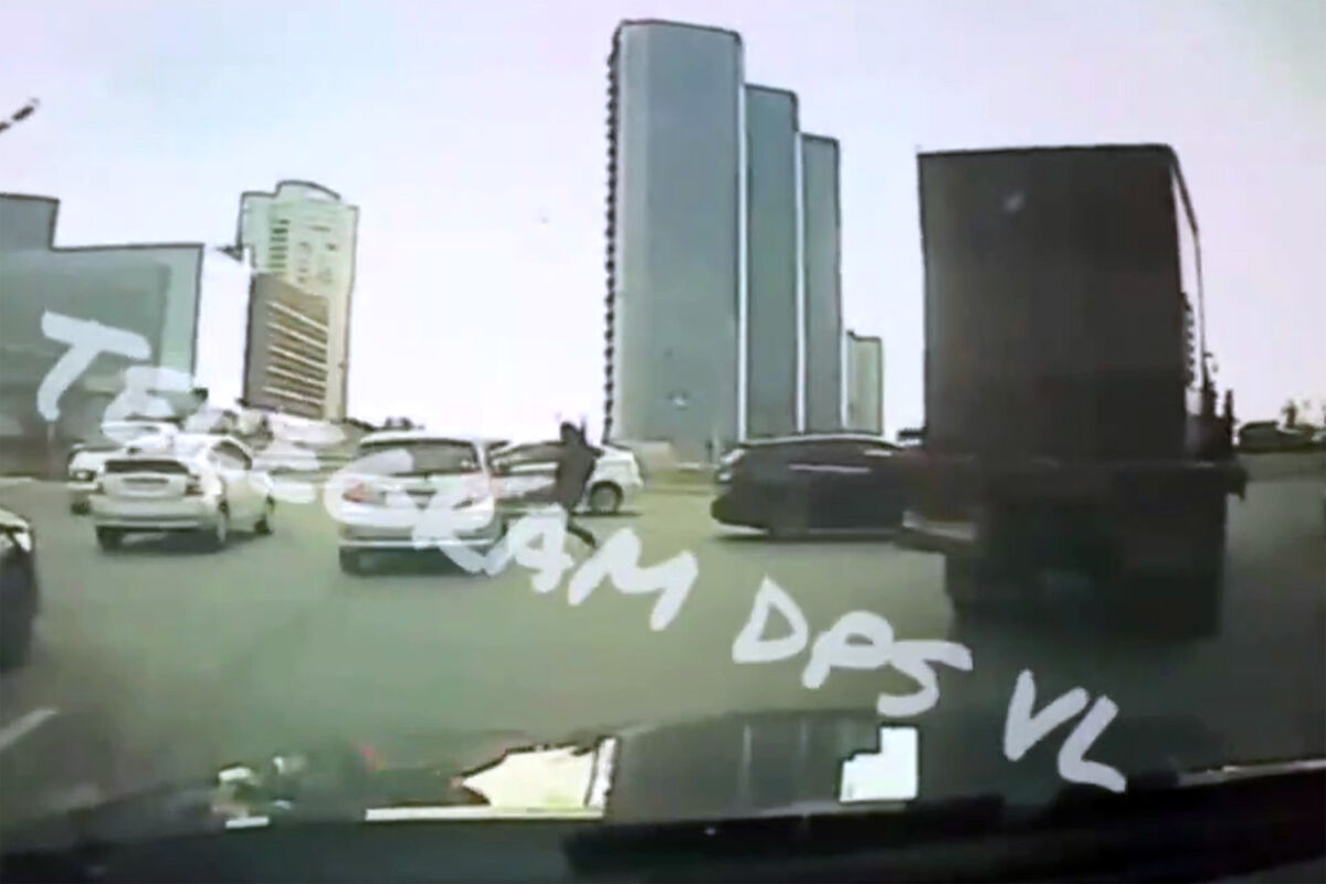 По данным канала, инцидент произошел после конфликта на проезжей части. Водитель Subaru Levorg без номеров создавал аварийную ситуацию на дороге, тогда водительница решила посигналить мужчине, но тот заблокировал ей проезд.