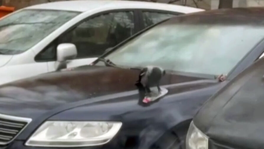 В Москве ворона каталась по капоту припаркованного автомобиля. Об этом сообщает Telegram-канал «Новости Москвы».
