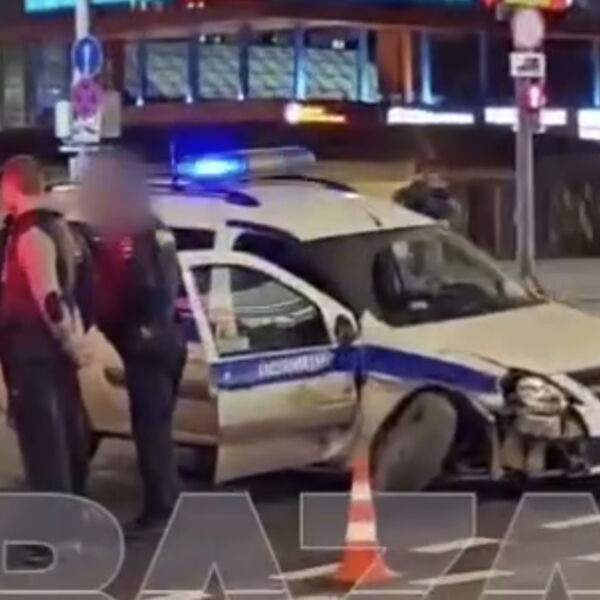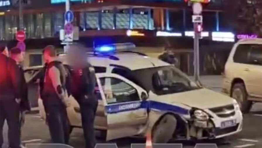 В Москве автомобиль столкнулся с патрульной машиной. Об этом сообщает Telegram-канал Baza.