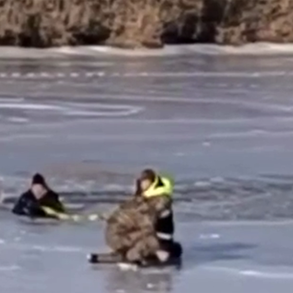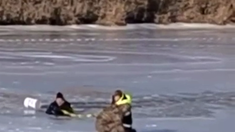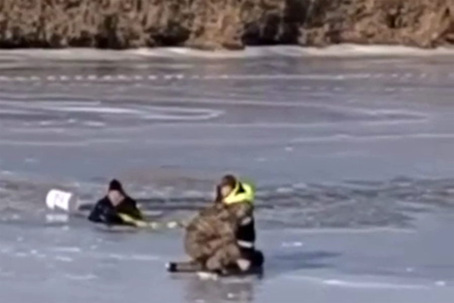 На кадрах видно, как при помощи троса двое мужчин вытаскивают пострадавшего из холодной воды. Приморцы вытягивают водителя на снег, после чего пострадавший поднимается и что-то говорит своим спасателям.