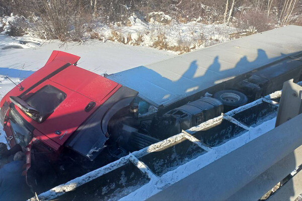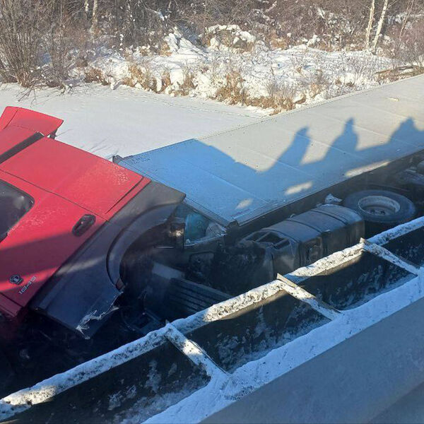 «Авария случилась в Кабанском районе. Большегруз ехал по мосту через реку Абрамиха, но водитель съехал с него», — сообщает канал.