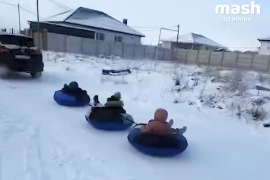 Под Симферополем водитель кроссовера катал детей в привязанных к машине тюбингах. Видео опубликовал Telegram-канал «Mash на волне».