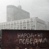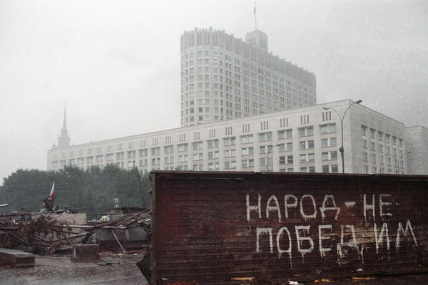 Баррикады у здания Верховного Совета РСФСР во время путча ГКЧП, 1991 год