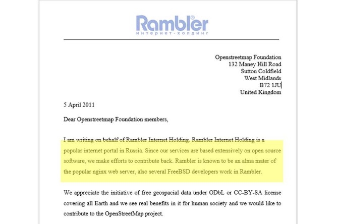 Сам Сысоев в ряде интервью де-факто признает, что занимался созданием mod_accel (первое название Nginx) по заданию «Рамблера»: