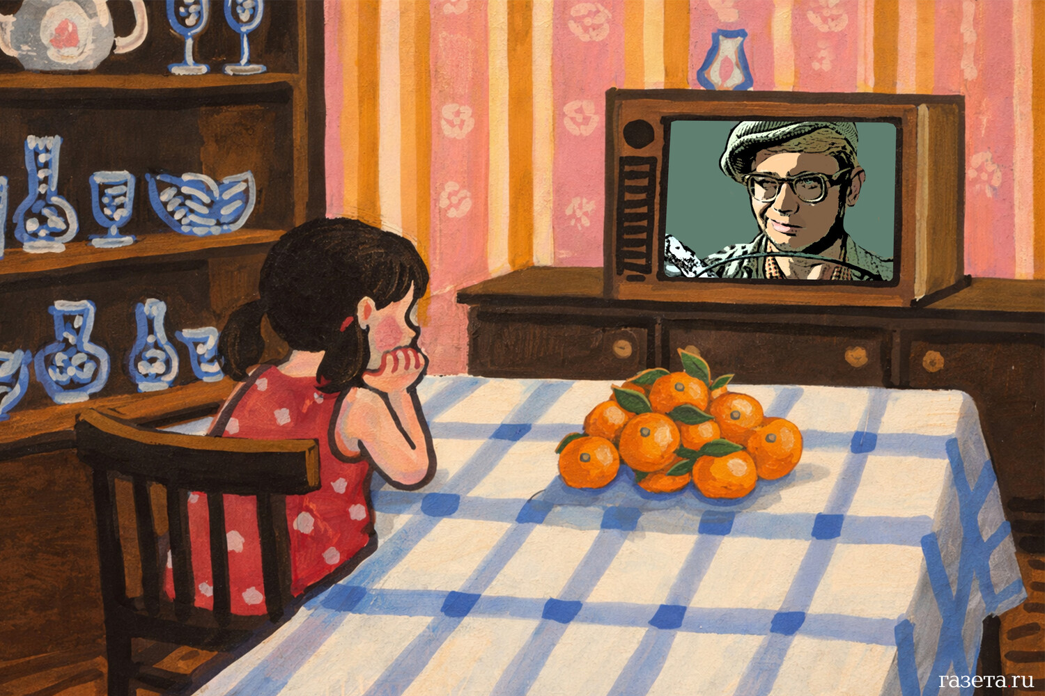 Эффект полного погружения в детство. В телевизоре — старые песни, старые лица. Старые фильмы. 30 лет назад с утра до вечера крутили «Шурика», «Служебный роман», «Самогонщиков», к ночи — «Иронию судьбы». Теперь еще по кабельным каналам показывают и новые «Иронию» со «Служебным романом». Которые тоже успели надоесть и превратились в старые. Зеркало в зеркале. Включил утром телевизор — и до вечера уже, не приходя в себя, идешь по 3-й улице Строителей.