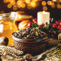 Вечером 6 января, когда на небе загорается первая звезда, верующие начинают праздничную трапезу и пробуют сочиво (кутью) — сладкую кашу из зерна с орехами, сухофруктами и медом.