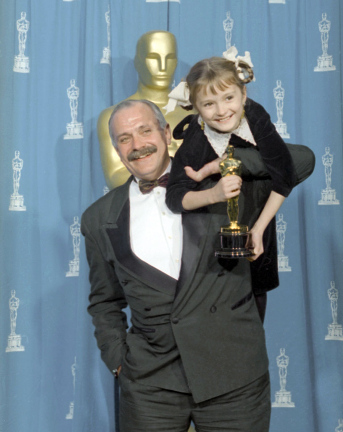 Никита Михалков и его дочь Надя с наградой за лучший фильм на иностранном языке за кулисами церемонии премии «Оскара», 1995 год