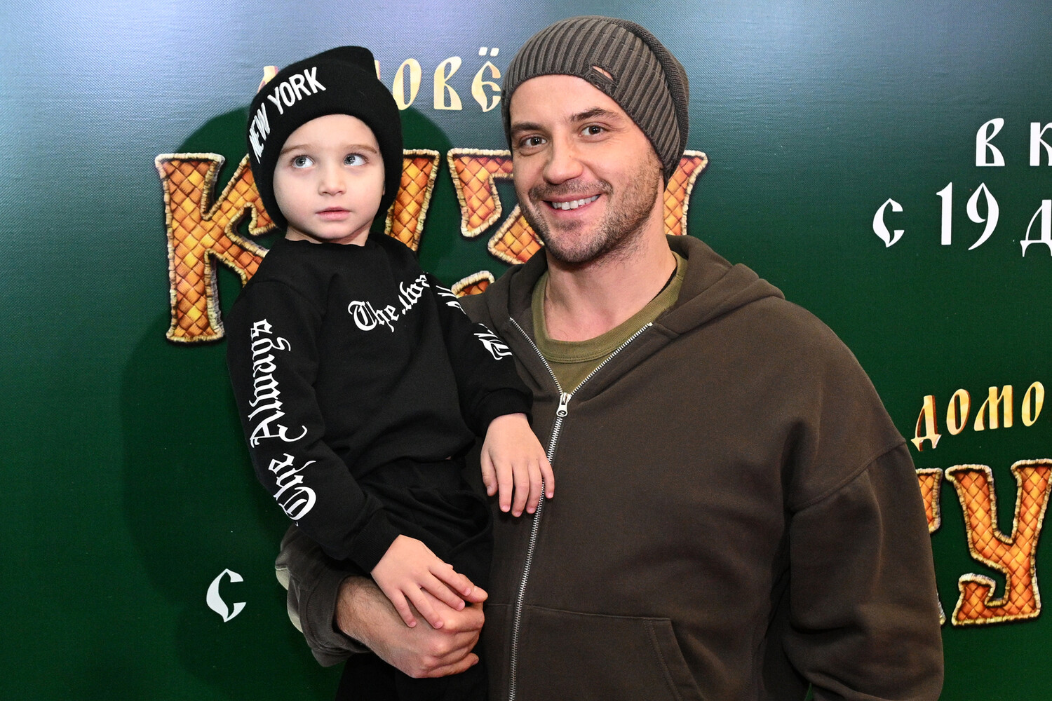 Актер Марк Богатырев с сыном Данилой на премьере мультфильма «Домовенок Кузя», 2024 год