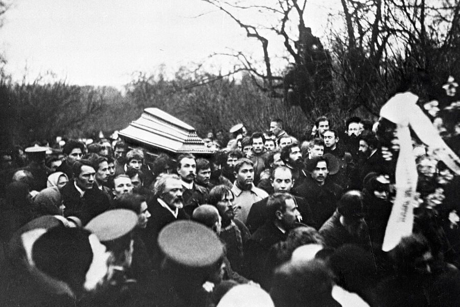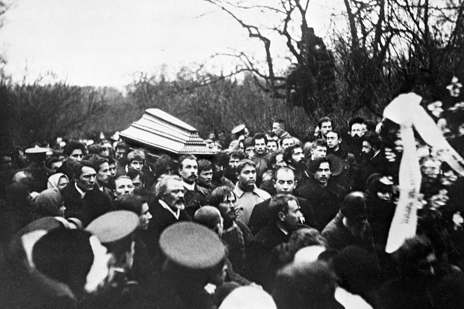 Траурная процессия с гробом Льва Толстого направляется от станции Засека к Ясной Поляне, 1910 год