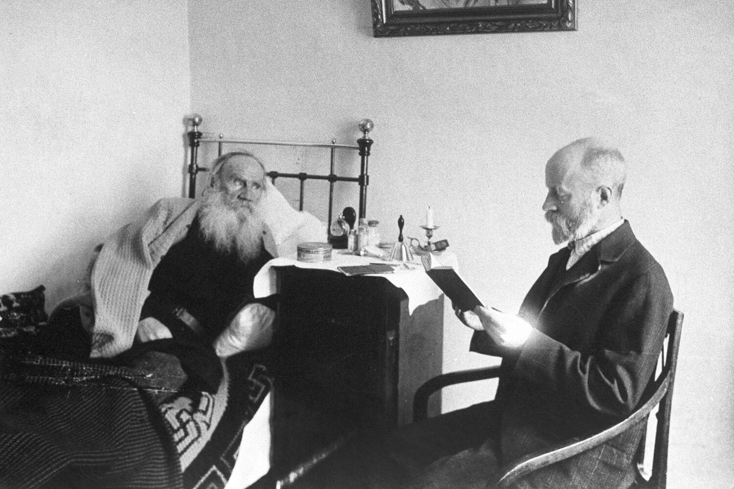 РИА НовостиНесколько дней Софья Андреевна и многочисленные домочадцы Толстого провели в вагоне на станции. Лев Николаевич думал, что его жена осталась в Ясной Поляне. «Раз, присев, он сказал: «Боюсь, что умираю». В другой раз отхаркнул мокроту, сделал гримасу и сказал: «Ах, гадко». Раза два он говорил: «Тяжело». Дыхание, как я считал, было более 50 в минуту. Не помню, когда именно он сказал: «Я пойду куда-нибудь, чтобы никто не мешал. Оставьте меня в покое», — вспоминал позже Сергей Львович. Именно к нему были обращены последние осознанные слова великого писателя, которые разобрал не он, а Душан Маковицкий: «Истина… люблю много… все они…» (или — «Истину… я люблю много, я люблю всех…»).