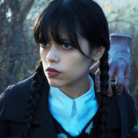 - Уэнсдэй Аддамс (Дженна Ортега) — старшеклассница с даром ясновидения, увлекающаяся тру-краймом и смотрящая на мир так, будто он уже ей надоел. Пишет собственную детективную серию, печатает на машинке, ненавидит цветы и страдает от аллергии на все яркое.