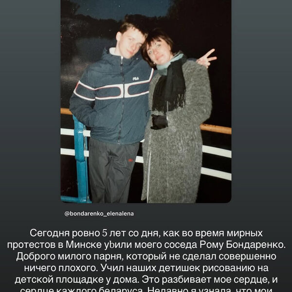 Певица Рита Дакота почтила в Instagram (владелец компания Meta признана в России экстремистской и запрещена) память своего знакомого Романа Бондаренко, которого не стало 5 лет назад во время протестов в Белоруссии в 2020-2021 годах.