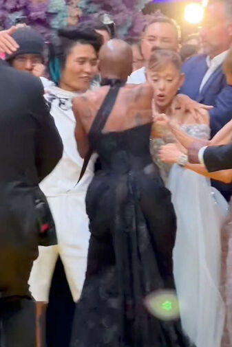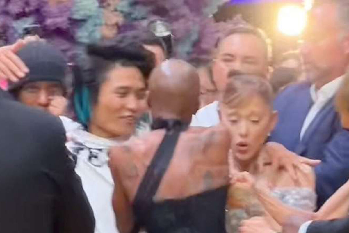 На премьере фильма «Злая: Сказка о ведьме Запада», которая состоялась 13 ноября 2025 года в Сингапуре, Гранде шла по желтой дорожке вместе с коллегами — Мишель Йео, Синтией Эриво и Джеффом Голдблюмом, как вдруг к ней подбежал мужчина в белой рубашке и шортах. Он обхватил артистку за плечи в намерении прижать к себе, а она пыталась отстраниться.