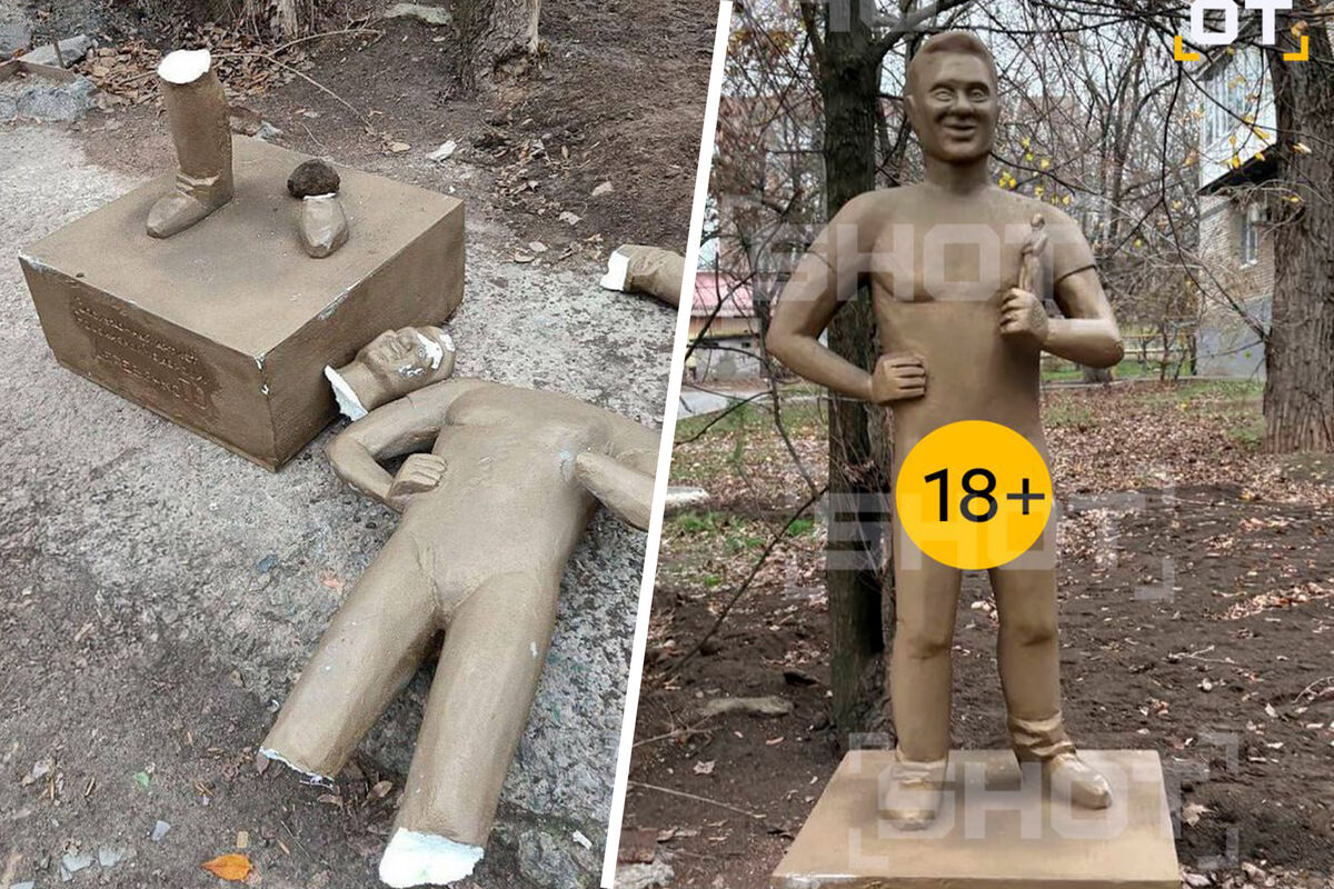 Kp.ru отметили, что статую снесли на следующий день. На постаменте остались одни ботинки.