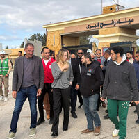 Актриса пообщалась с членами Красного Полумесяца и водителями грузовиков, доставляющих гуманитарную помощь. Также она встретилась с губернатором провинции Северный Синай Халедом Мугауиром.