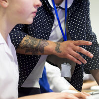 У меня забиты обе руки, предплечья. Одна татуировка недалеко от изгиба локтя, ее не особо видно, а вторая набита ровно под рукав одежды. Я предполагала, что, если окажусь в школе, это поможет ее скрыть, но в итоге перед детьми сдеанонилась в первый же день, потому что у меня привычка закатывать рукава, когда рассказываю о чем-то эмоциональном.