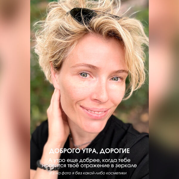 «А утро еще добрее, когда тебе нравится отражение в зеркале. На фото я без какой-либо косметики. Моя гладкая и бархатистая кожа это, конечно, результат ежедневного ухода за ней. Пусть ваше отражение улыбается вам, а вы ему в ответ, потому что нравитесь самой себе», — отметила артистка.