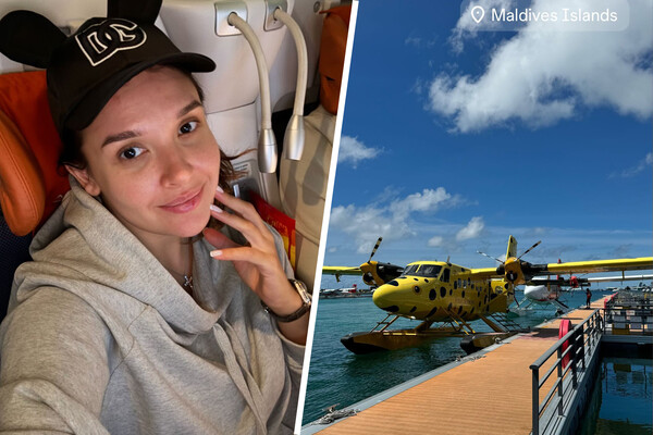 «Ура! Полетели отдыхать. Сейчас этот красавчик повезет нас в первое с мужем путешествие», — отметила артистка.