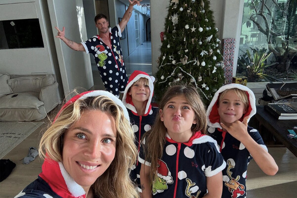 Звезда «Тора» Крис Хемсворт снялся с женой и тремя детьми в одинаковых пижамах. Супруга актера Эльза Патаки поделилась в соцсетях редким семейным фото, не скрывая лица дочери и сыновей.