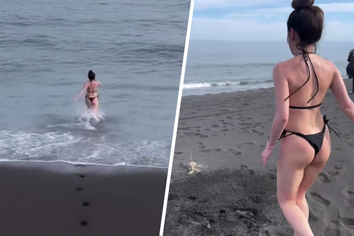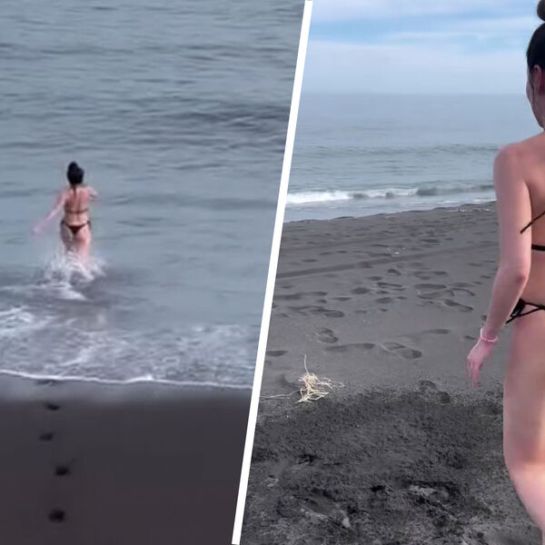 «Температура воды +5, температура воздуха +15. Халактырский пляж с черным песком», — отметила артистка.