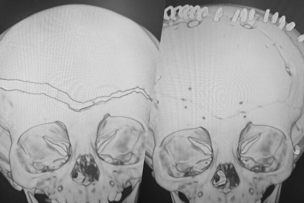 «У ребенка была гигантская эпидуральная гематома и линейный перелом лобной и теменной костей с расхождением линии перелома до 1,5 см», — рассказал заведующий нейрохирургическим отделением ВКБ №2 Сергей Моисеенко, добавив, что у его коллега на счету была каждая минута.