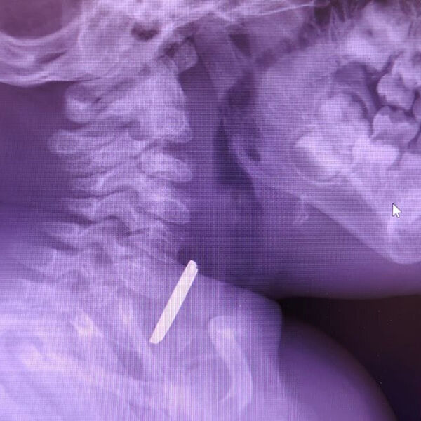 Маленький пациент поступил в больницу с затрудненным глотанием и слюноотделением. Ребенка направили на рентген, который показал наличие батарейки в верхней трети пищевода. Пациента направили направили на экстренную операцию, и под наркозом извлекли предмет, который уже успел причинить здоровью младенца вред.