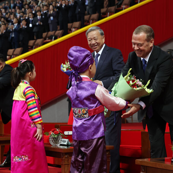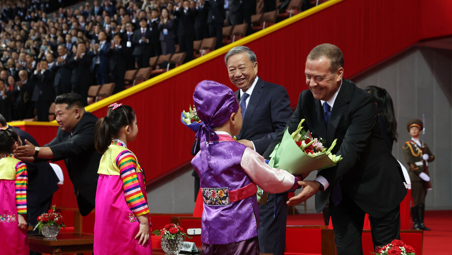 Кроме музыкантов, в Северную Корею прибыла и делегация российских политиков, в их числе — зампред Совбез РФ Дмитрий Медведев. В ходе визита он поблагодарил северокорейский народ за помощь в освобождении Курской области, возложил цветы к статуям Ким Ир Сена и Ким Чен Ира и к монументу Освобождения в Пхеньяне, а также посетил выставку вооружений.