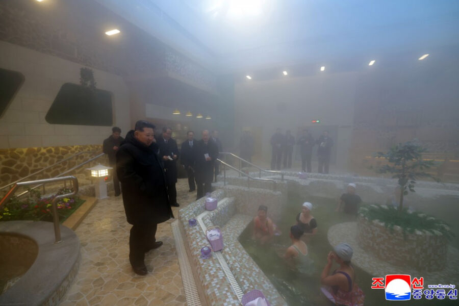 Ким Чен Ын лично проинспектировал культурно-рекреационную и медицинскую базу крупнейшего в стране курортного комплекса с горячими источниками. В частности, он заглянул в бани, где отдыхали мужчины и женщины. На опубликованных ЦТАК снимках видно, что Ким Чен Ын в этот момент искренне улыбался.