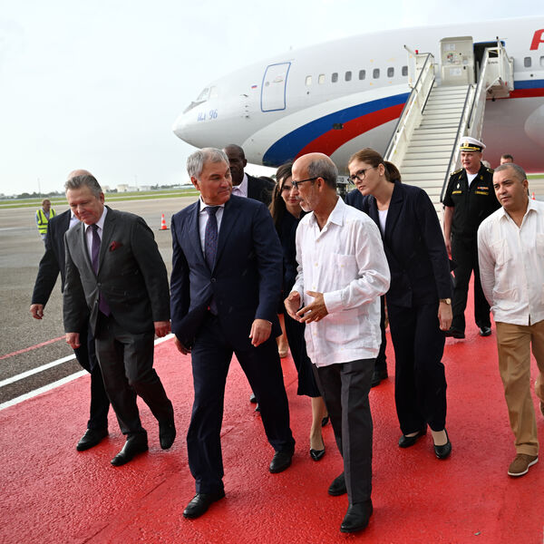 Вместе с российским спикером на Кубу прилетели первый вице-спикер Госдумы РФ Иван Мельников, заместители председателя думы Александр Бабаков, Владислав Даванков и Борис Чернышов, руководитель фракции ЛДПР и глава комитета по международным делам Леонид Слуцкий, а также председатели думских комитетов по энергетике, обороне, безопасности и противодействию коррупции и информационной политике, информационным технологиям и связи Павел Завальный, Андрей Картаполов, Василий Пискарев и Александр Хинштейн.