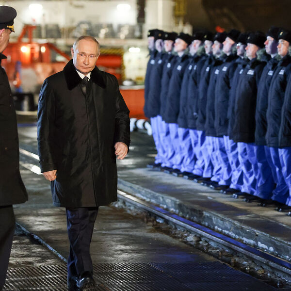 Президент России Владимир Путин во время визита в Мурманск по видеосвязи принимает участие в церемонии спуска на воду нового атомного подводного крейсера «Пермь». Об этом сообщает РИА Новости.