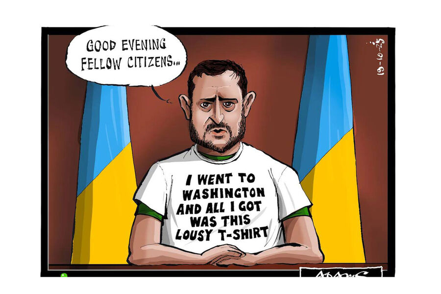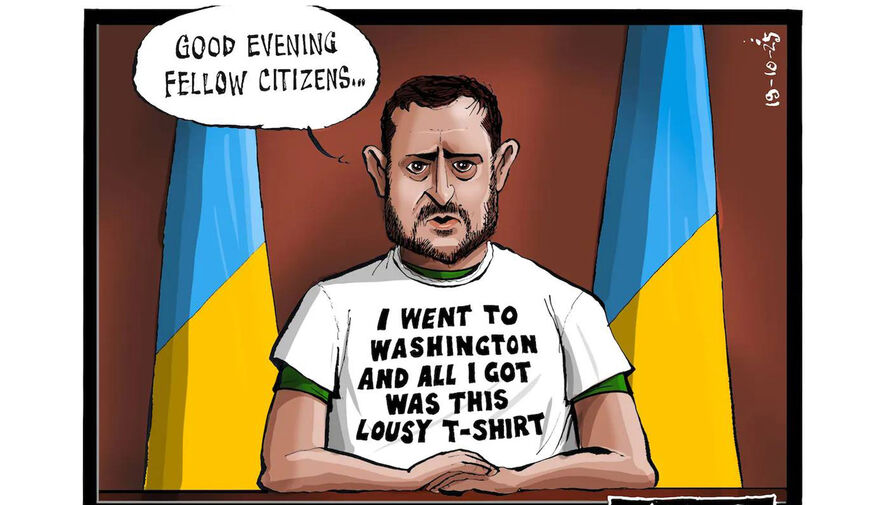 Британская газета The Telegraph опубликовала карикатуру с президентом Украины Владимиром Зеленским по мотивам его неудачного визита в США.