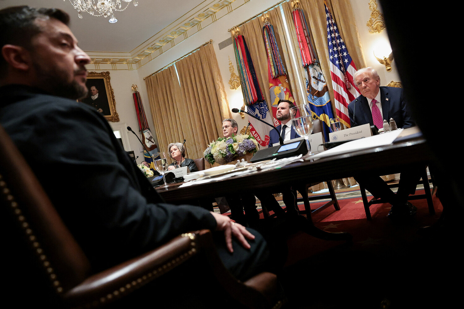 Как сообщила газета Financial Times со ссылкой на источники, Трамп во время встречи с Зеленским неоднократно переходил на повышенный тон и в какой-то момент сбросил со стола карты боевых действий на Украине. По информации издания, встреча двух лидеров неоднократно перерастала в перепалку, во время которой президент Соединенных Штатов «постоянно ругался».