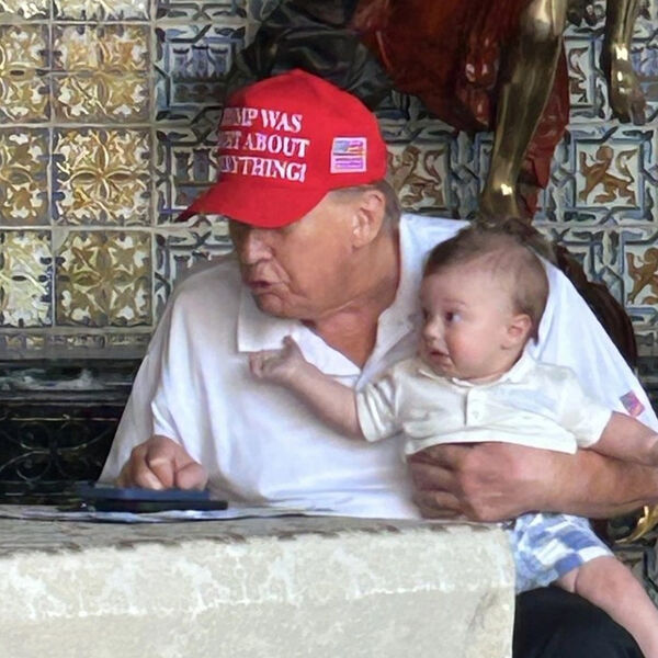 Для отдыха с семьей президент США выбрал не официальный костюм, а повседневную одежду. Он надел красную кепку с надписью «Трамп был прав во всем», а также белую футболку-поло и черные штаны. Где именно был сделан снимок, не уточняется. На заднем фоне можно увидеть расписную плитку на стене, в связи с чем можно сделать вывод, что президент находился где-то за пределами своей официальной резиденции в Вашингтоне.