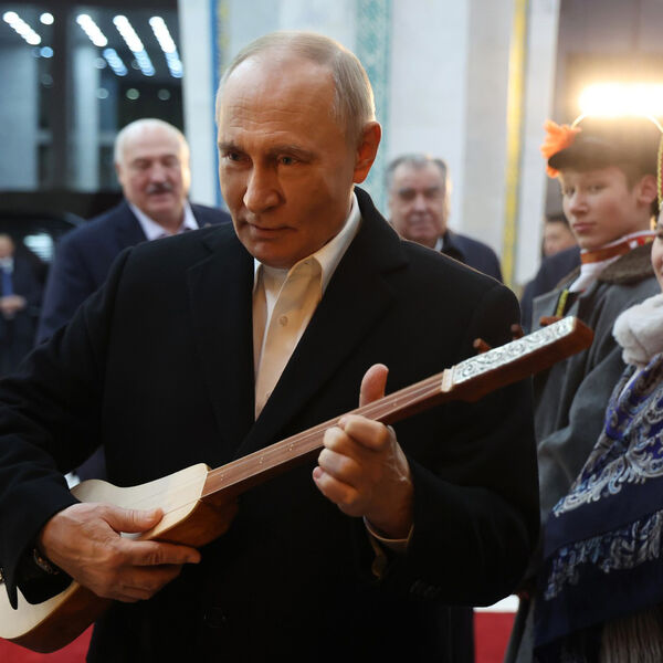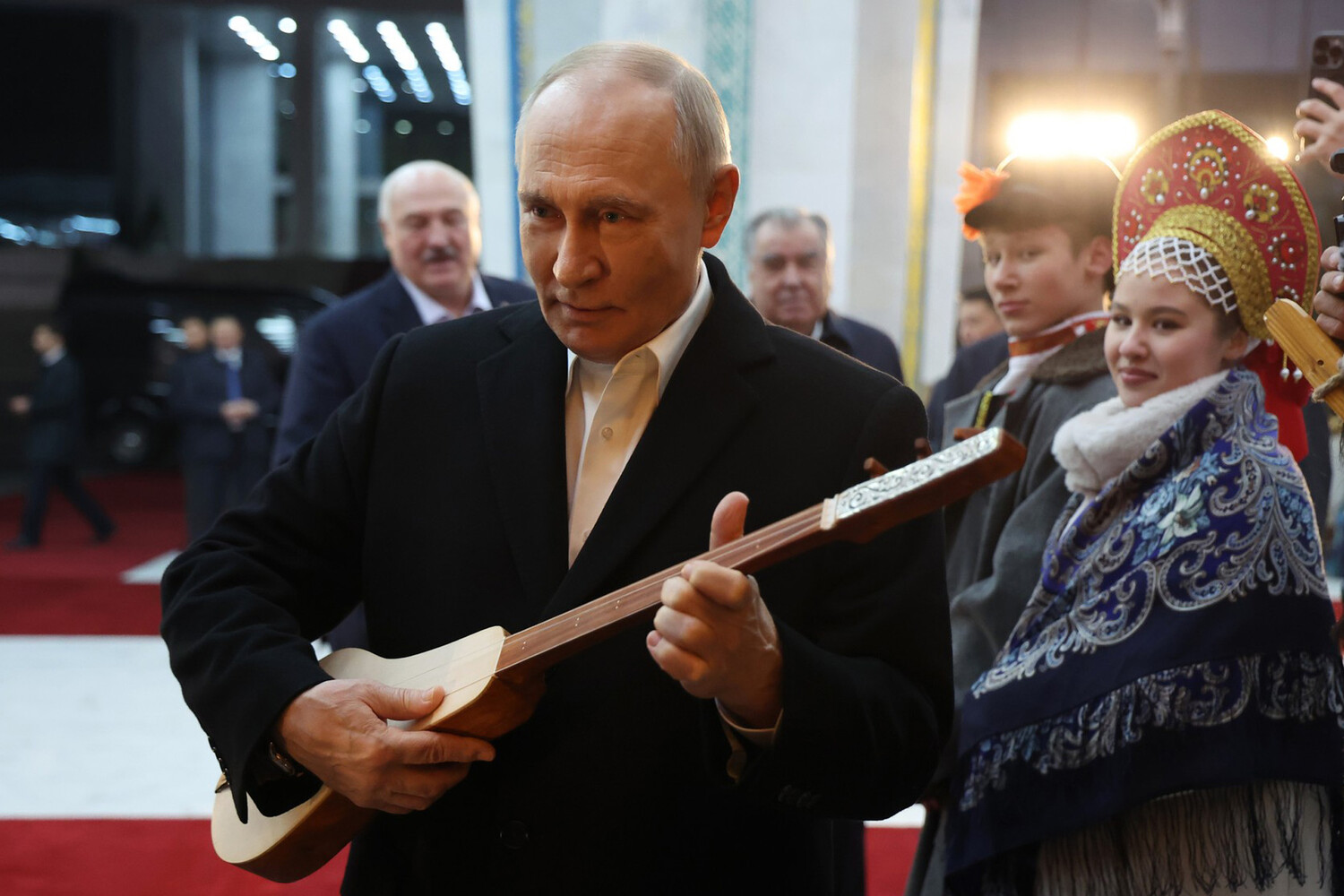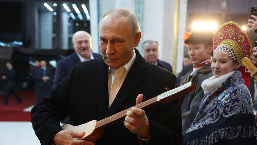Политикам объяснили, как играть на музыкальном инструменте. На видео из юрты Путин берет комуз в руки и пытается взять несколько аккордов. Лукашенко предположил, что инструмент не настроен, но президент России с ним не согласился.