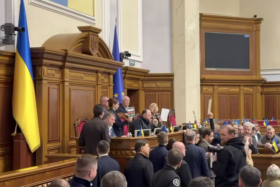 Депутаты от партии «Европейская солидарность» во главе с бывшим президентом Украины Петром Порошенко вновь заблокировали трибуну Верховной рады и потребовали отставки всего правительства страны. Об этом в своем Telegram-канале сообщил депутат украинского парламента Алексей Гончаренко.