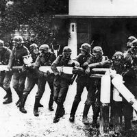 Придя к власти, Гитлер вернул под немецкий контроль многие земли, отторгнутые по итогам Первой мировой войны, включая город Саарбрюккен и Рейнскую демилитаризованную область. В попытке договориться с фюрером западные страны согласились отдать Германии даже то, что ей никогда не принадлежало: Судетскую область Чехии. Это вошло в историю как Мюнхенский сговор, в ходе которого Гитлер клятвенно заверял, что это последнее его требование. Всего лишь спустя полгода нацисты захватили всю остальную Чехию — опять таки с молчаливого согласия западных стран, которые вновь выбрали «мир». Наконец, и в самой Польше немцы не пытались делать вид, что их интересуют только «исторические немецкие земли», что следовало бы из речи Гитлера. Вместо этого они начали править ей по праву сильного.