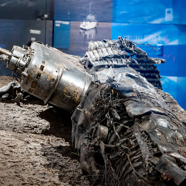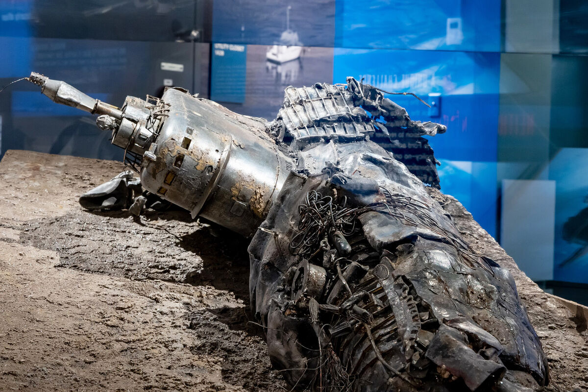 Courtesy of the International Spy MuseumВместе с тем в носовом отсеке удалось идентифицировать тела шести погибших моряков. По ним провели отпевание и захоронили в море, по военно-морскому обряду. В 1990-х годах видеозапись похорон вместе с поднятой рындой (колоколом) лодки и советским флагом, которым покрывали гробы, передали правительству РФ.