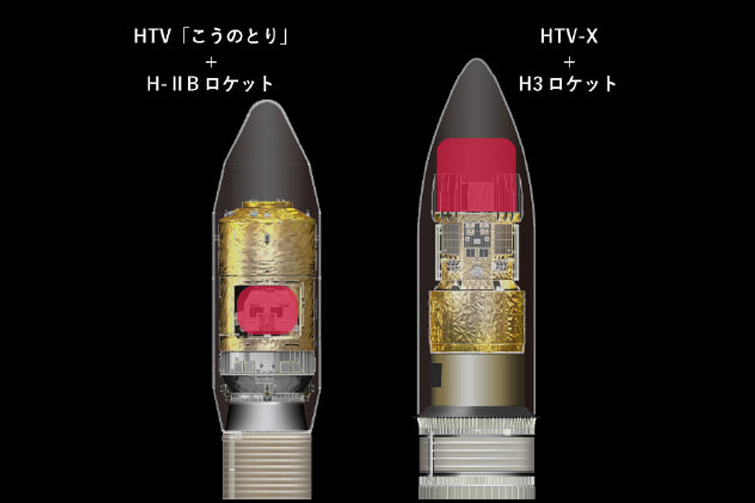 Сравнение размеров негерметичного «багажника» у HTV и HTV-X