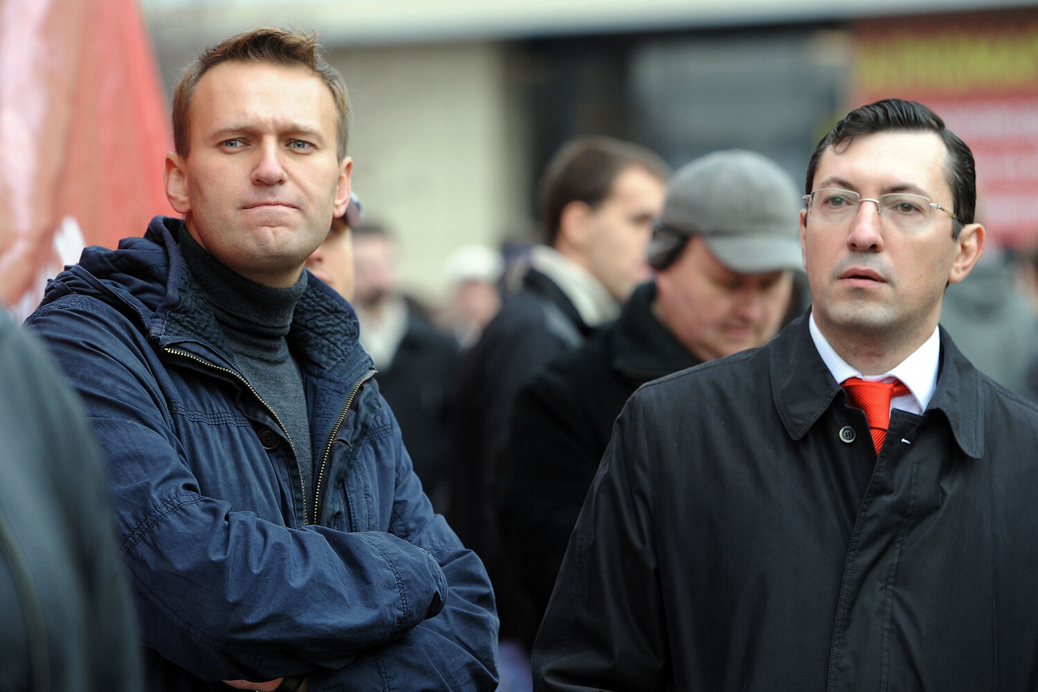 Блогер Алексей Навальный и Александр Белов на акции националистических движений «Русский марш» в Москве, 2011 год