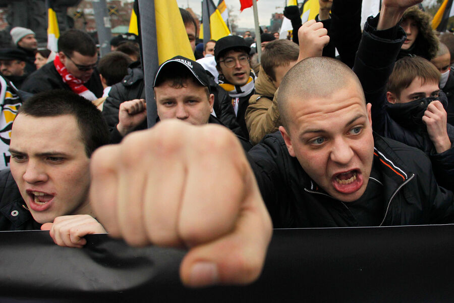 Григорий Сысоев/ТАССПостепенно популярность марша росла, а идеологической чистоты рядов в нем не прибавлялось. Его ядром всегда оставались националисты, чьей главной повесткой была борьба с миграцией, диаспорами, преступностью и, как они считали, духовным разложением русских. Среди некоторых националистов популярностью пользовался классический антисоветизм и симпатия к Белому движению.Какую-то часть аудитории составляли откровенные неонацисты, без всякой иронии приветствующие друг друга нацистским салютом, в просторечии — «зигой». Не разворачивали знамена со свастиками они в основном потому, что это привело бы к пиар-катастрофе и немедленным жестким столкновениям с милицией.