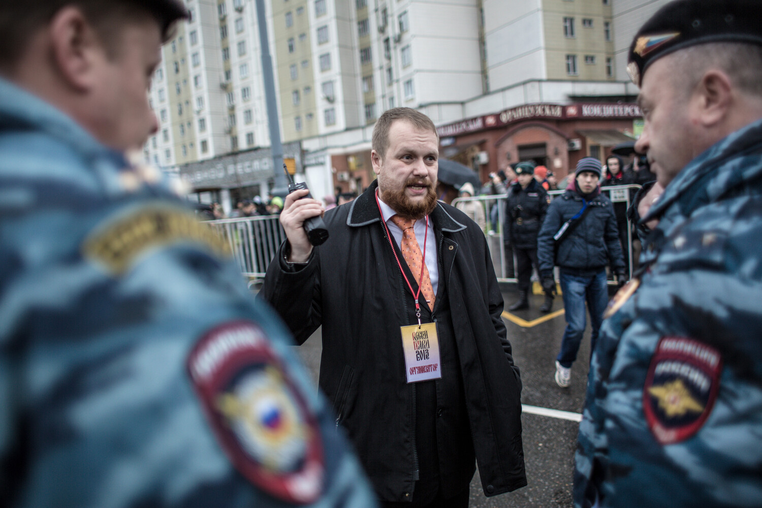 Лидер националистического объединения Дмитрий Демушкин на «Русском марше» в Москве, 2013 год
