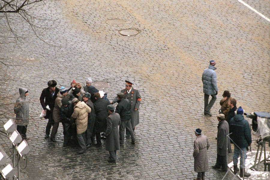 7 ноября 1990 года, когда СССР доживал последние месяцы и страна трещала по швам, на Красной площади проходила демонстрация в честь 73-летия Октябрьской революции. Как это бывало каждый год, толпа народа с транспарантами и плакатами проходила перед Мавзолеем, где их приветствовало советское руководство. В тот год на трибуне Мавзолея в качестве главы государства стоял Михаил Горбачев, уже ставший официальным президентом СССР, а не просто главой ЦК.