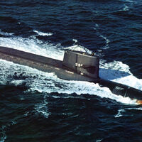 Однако когда на флоте осознали, сколь маленькой будет «Поларис», то полностью перекроили проект. Двухступенчатая ракета имела длину 8,7 метра, что позволяло вписать ее в корпус подводной лодки. Поэтому американские конструкторы взяли новейшую атомную субмарину типа «Скипджек» и вставили в нее 40-метровый ракетный отсек, между ядерным реактором и отсеком управления.