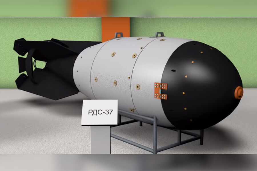 Д.Ильин/Wikimedia CommonsТак стартовали работы на бомбой РДС-37, готовой уже к осени 1955 года. Ее точная конструкция до сих пор не раскрывается, но исследователи считают, что она представляла собой тандем из двух устройств в одном корпусе. Заряд первой ступени был похож на атомную бомбу РДС-2. Заряд второй ступени, как изначально Сахаров и предлагал, был модифицированной «слойкой». Взрыв первой бомбы обжимал «слойку», и зажигалась термоядерная реакция, которая доводила суммарную мощность взрыва до трех мегатонн.