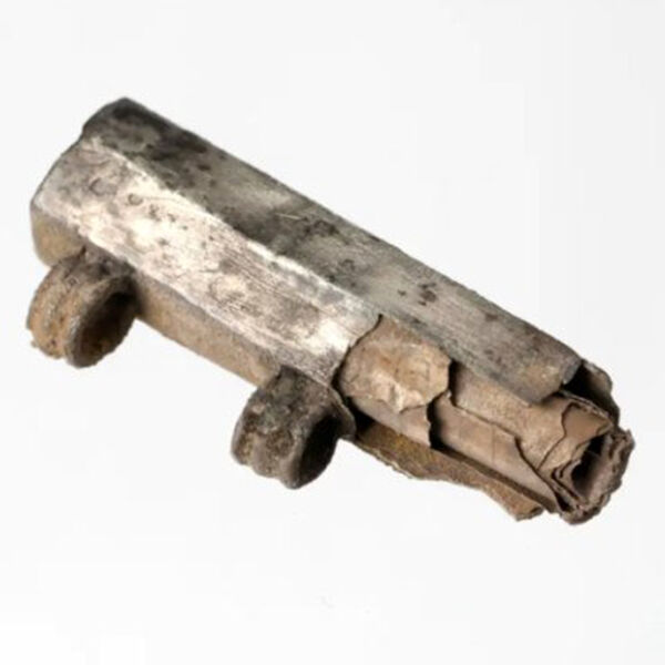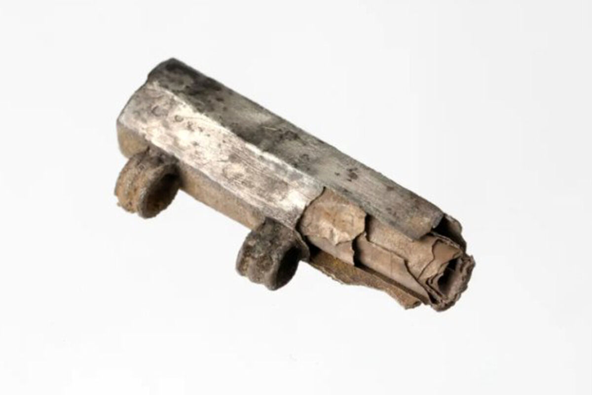 Амулет был найден на месте древнего захоронения. В 2020 году ученые из Лейпцигского института (LEIZA) провели рентгенографию артефакта и обнаружили внутри фольгу из серебра с латинской гравировкой. Из-за состояния материала, который нельзя было раскрыть без повреждений, исследователи создали виртуальную модель амулета с помощью компьютерной томографии. Это позволило «развернуть» амулет и восстановить текст.
