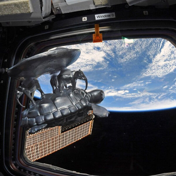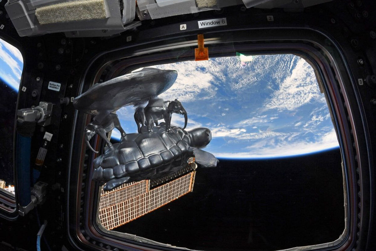 По словам космонавта, в прошлый полет он брал с собой самую популярную, древнеиндийскую модель — черепаху с тремя слонами на спине.