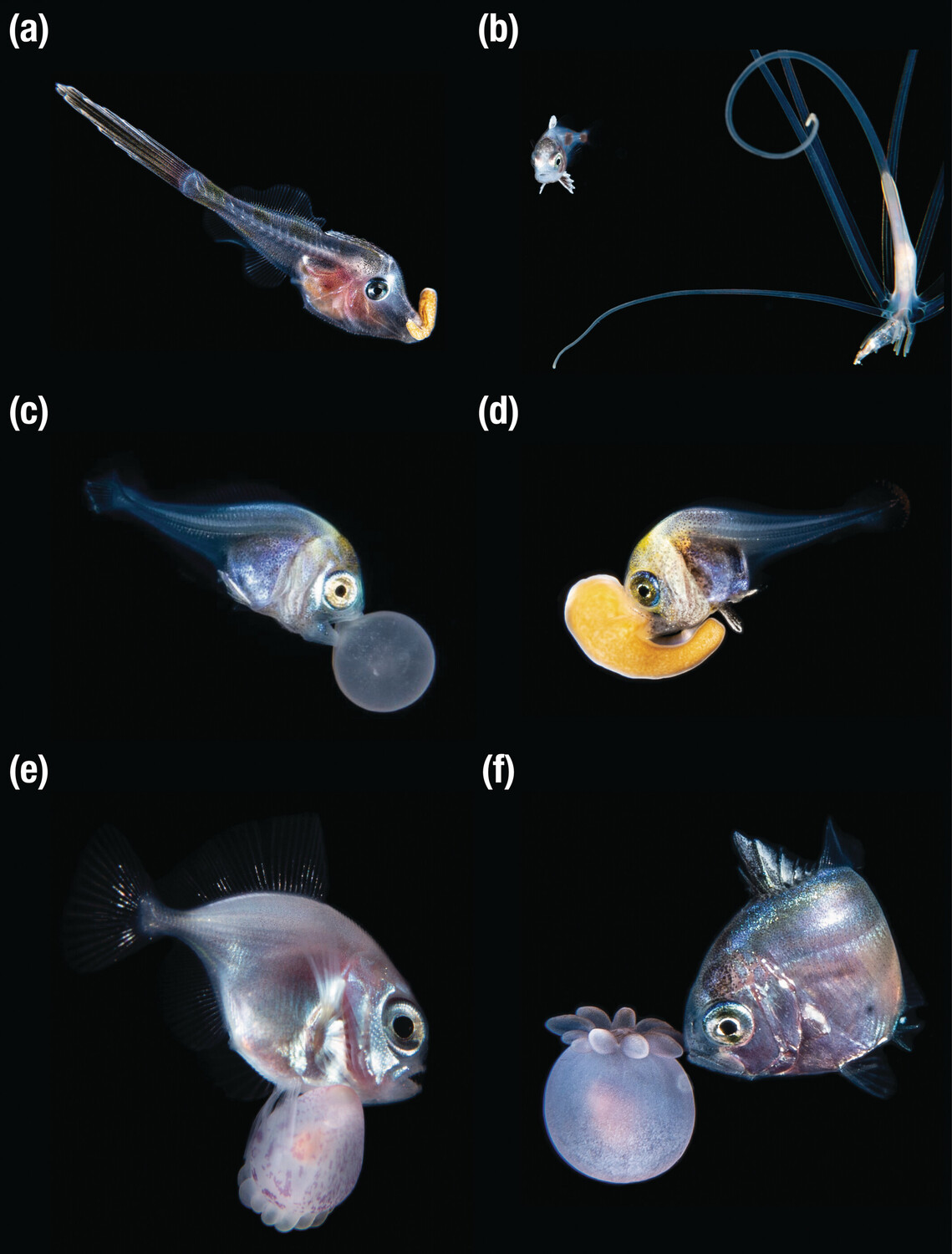 За ношением во рту личинок кораллов были застигнуты представители следующих семейств: ариомматовые (Ariommatidae), морские лещи (Bramidae), ставридовые (Carangidae) и единороговые (Monacanthidae). Они переносили личинок цериантарий из семейств Arachnactidae и Cerianthidae и зоантарий из семейства Sphenopidae.