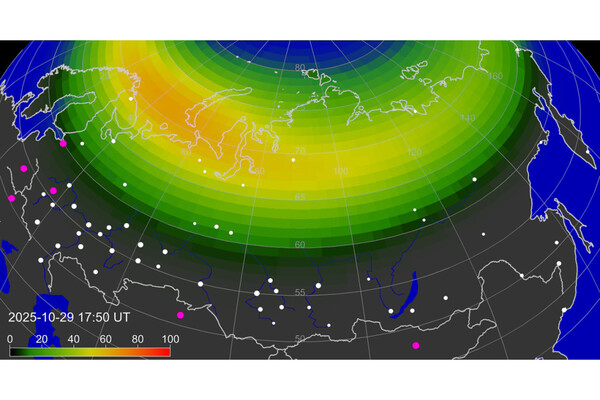 «Также повышены вероятности для Санкт-Петербурга и Ленинградской области. В центральных регионах России наблюдения в данный момент невозможны», — говорится в посте.