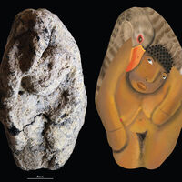 Команда под руководством Лорана Девина из Еврейского университета в Иерусалиме обнаружила статуэтку на раскопках археологического памятника Нахаль Эйн-Гев II, относящегося к натуфийской культуре. Объект нашли внутри полукруглого строения, сложенного из камней на склоне холма. Там же лежали 20 человеческих захоронений и следы ритуальных подношений.